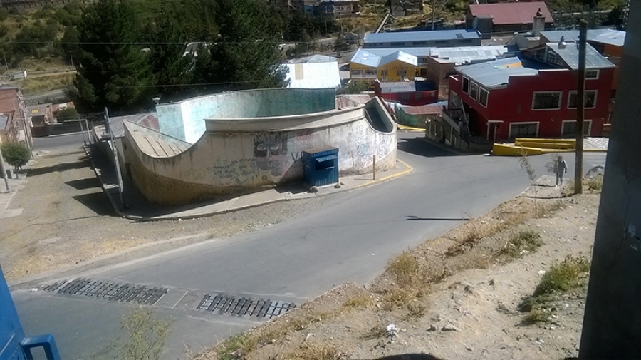 Bryan Ibáñez, estudiante de 26 años, me acompaña hasta la calle 8 de Achachicala, justo cuando la tarde declina, así que a duras penas descubro una construcción en forma de media luna y en el muro desportillado una inscripción: “Joven, cambia al mundo, no dejes el que el mundo te cambie”. Se trata de un teatrín al aire libre con graderías en el que fácilmente caben unas 150 personas. Un escenario de cerca de tres metros cuadrados y por detrás baños y vestidores.