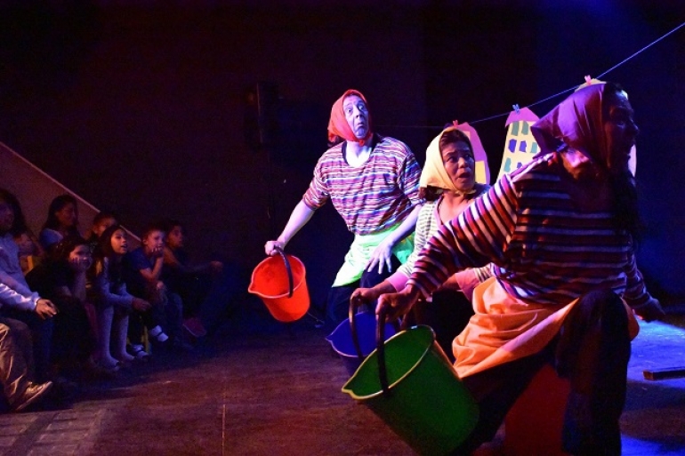 El sonido del agua chorreando sin remedio de un grifo sin cerrar, molesta los oídos casi de inmediato. El recato y la timidez me impiden pedirle al actor que cierre la pila. Estoy esperanzado en que alguno de los niños presentes en la obra “Aguamanía” lo haga por mí; niños y adultos compartimos el espacio gobernados por la misma inocencia y curiosidad.