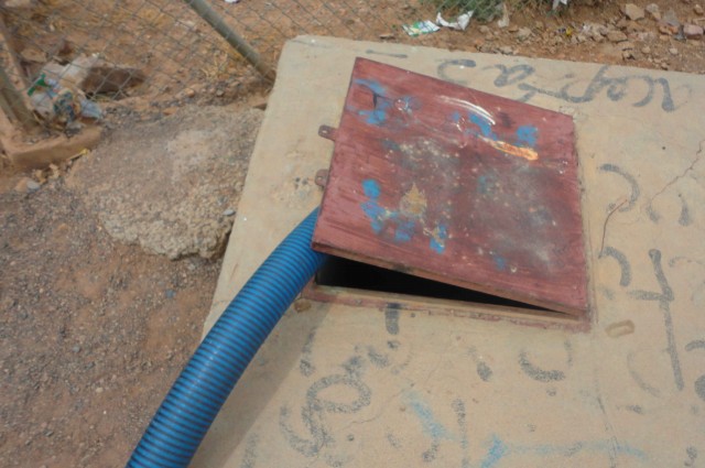 Carro Sisterna abasteciendo de agua el tanque del Comité. Fotografía: Ida Peñaranda