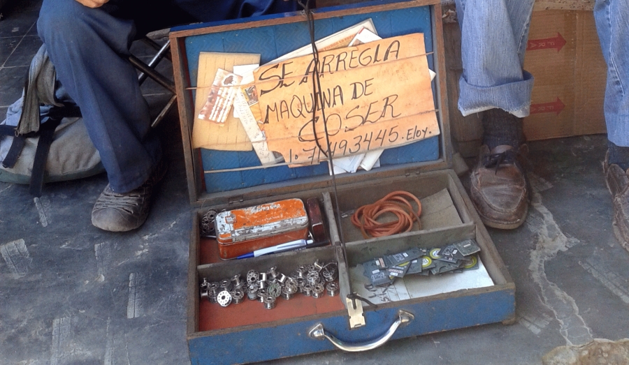 Por dos horas de trabajo en las que deja el aparato como nuevo, Eulogio ha cobrado Bs 30. Pero para ello ha esperado un cliente en el mercado de la Cancha otras dos horas; es decir que en toda una mañana de trabajo ha generado menos de cinco dólares. Está muy difícil la vida, dice refiriéndose a los precios de las cosas que cada vez encuentra más altos; por eso se siente bien por trabajar como ha hecho toda su vida. La diferencia, confiesa, es que la vista no es la misma de antes. ¿Enfermarse? Pues Dios no quiera, porque no tiene dinero ahorrado ni renta para tal circunstancia.