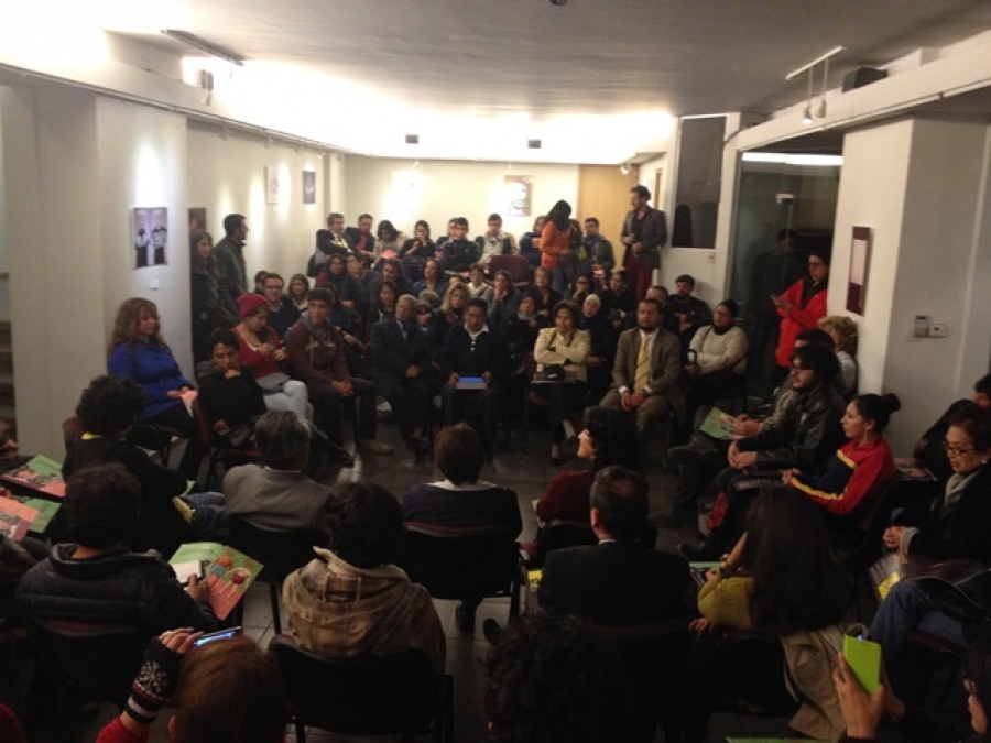 Ayman Altaramsi, presidente de la Asociación Islámica de Bolivia, explica que esa religión no tiene nada que ver con la violencia y la muerte. Acusa a los extremistas de dar argumentos para la división de los países islámicos y carta blanca para que EEUU los invada y se aproveche del petróleo. Entre quienes escuchan (tercero a la izquierda de Altaramsi) está Juan León, secretario ejecutivo de la ANP, quien antes había hablado sobre la libertad de expresión como un derecho de todos en sociedad.