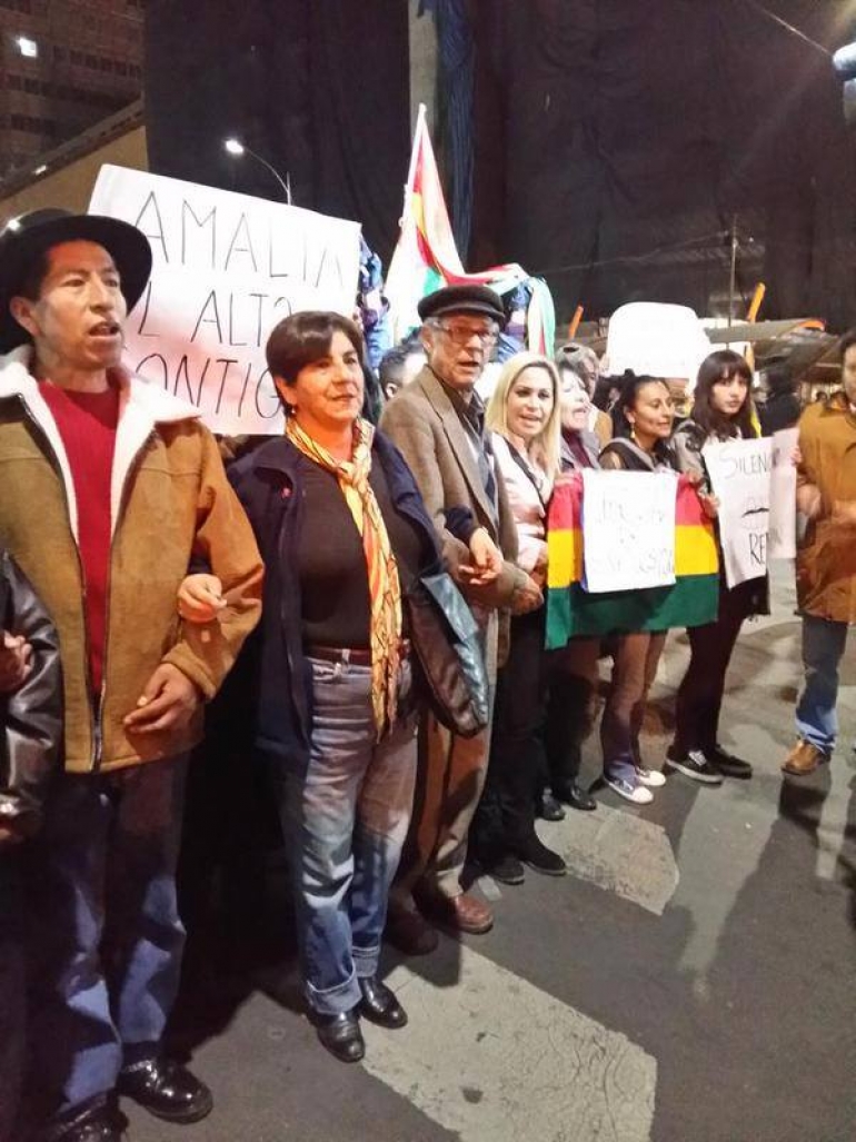 El martes 25 de agosto, los ciudadanos convocados desde el grupo “Defendamos a Erbol y Amalia Pando” participaron de una vigilia en la plaza San Francisco de La Paz. “Ésta es una vigilia por la defensa de la libertad de expresión y la libre información, pero además por todas las causas que los ciudadanos consideran deben ser escuchadas y atendidas por el Gobierno”, señaló Milton Fernández, quien además está molesto por la construcción de la línea blanca del teleférico en Miraflores, que le afecta sin que las autoridades responsables estén dispuestas a escucharlo.