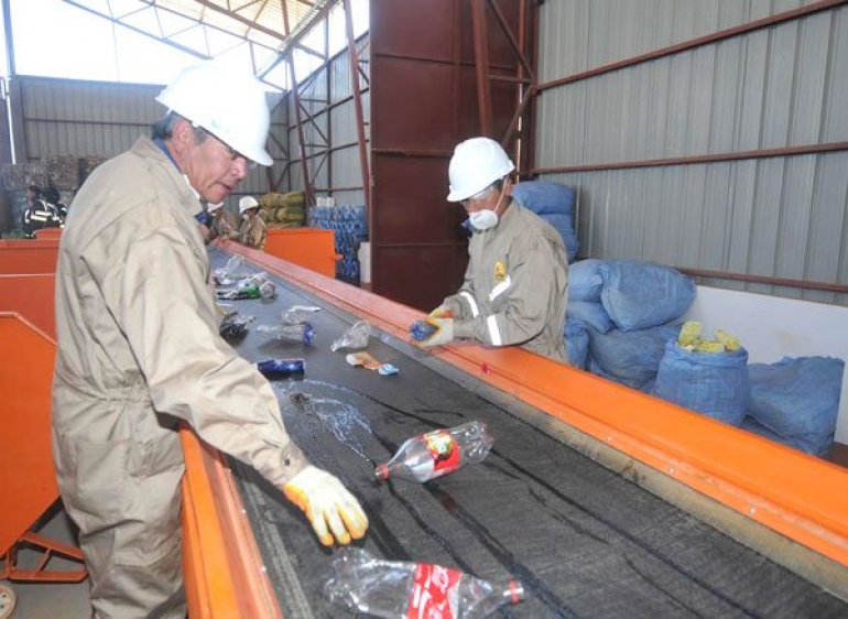 El gobierno municipal lleva adelante una recolección diferenciada de residuos en dos modalidades. La primera se desarrolla de lunes a jueves y está a cargo del personal de la planta de clasificación de Alpacoma (20 personas). Consiste en la recolección de desechos, previamente separados en dos grupos —papel y cartón por un lado, y plásticos, por el otro— de unidades educativas y de las oficinas de empresas, ONG y embajadas. Son 99 puntos de acopio en total.