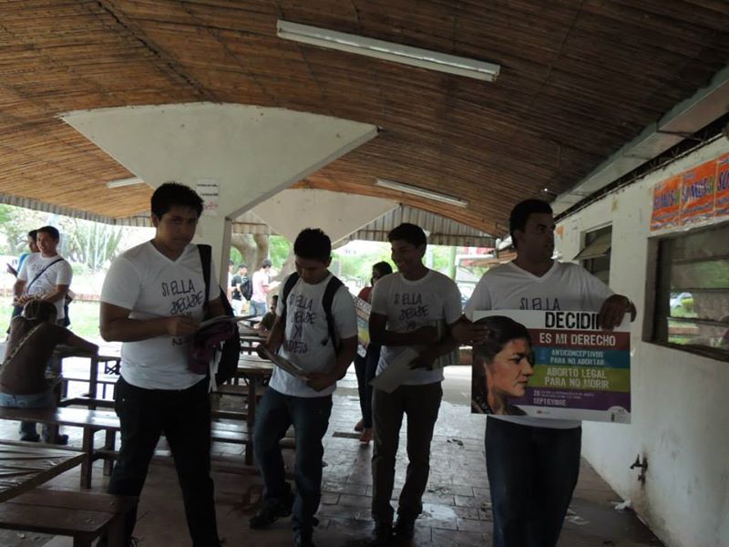 Ellos recorren las calles en apoyo al aborto seguro. En sus poleras la leyenda dice "Si ella decide, yo respeto" (Foto: Campaña 28 de Septiembre - Santa Cruz, Bolivia)